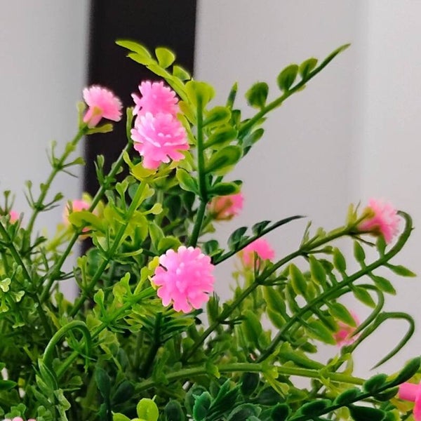 Beautify your space with this beautiful decorative artificial plant vase filled with pretty little pink or purple flowers.
